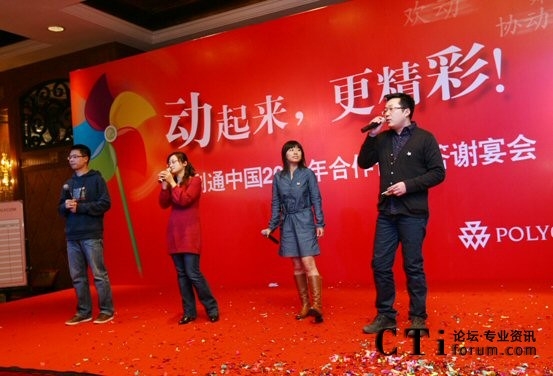 CTI論壇(ctiforum)2月22日消息(記者 袁青): 2009年月12月30日下午,寶利通“動(dòng)起來(lái)、更精彩”主題年會(huì)在北京國(guó)航萬(wàn)麗酒店隆重召開(kāi),直真信通公司代表與寶利通(中國(guó))全體員工以及中國(guó)區(qū)合作伙伴歡聚一堂,共饗盛典。在這里大家一同度過(guò)了4個(gè)多小時(shí)的快樂(lè)時(shí)光。除了美食之外,更多的是享受了一場(chǎng)視聽(tīng)盛宴。寶利通這支勇打勝仗的大隊(duì)伍,表演了自編自演的節(jié)目,內(nèi)容豐富多彩,堪稱一場(chǎng)民間春晚!