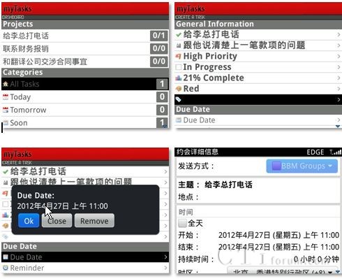 CTI論壇(ctiforum)4月26日消息(記者 歐陽): 再過幾天就是五一勞動節(jié)小長假啦!節(jié)前的最后幾天相信大家都在快馬加鞭想把手頭上的工作盡快處理完畢,好能過個安心的節(jié)日假期。我們也特別為大家搜集了黑莓智能手機上能夠在效率方面助大家一臂之力的幾款應用,希望它們可以在工作生活中為諸位帶來切實有效的幫助!