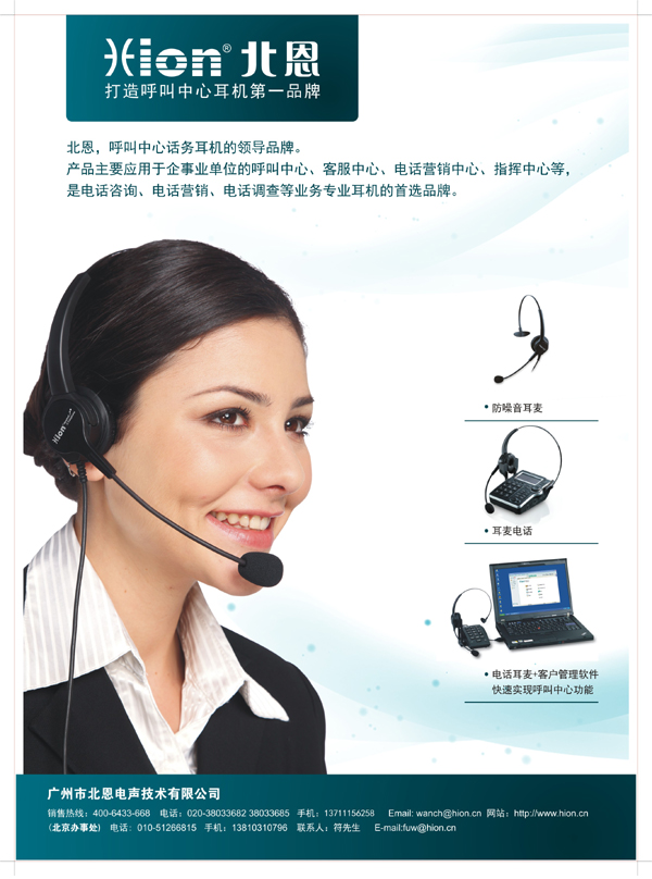 廣州市北恩電聲技術有限公司,成立于2003年,是呼叫中心專業(yè)耳機行業(yè)的領導者,產品全部來源于自主研發(fā),是集生產和銷售于一體,獨立的制造商和出口商。
