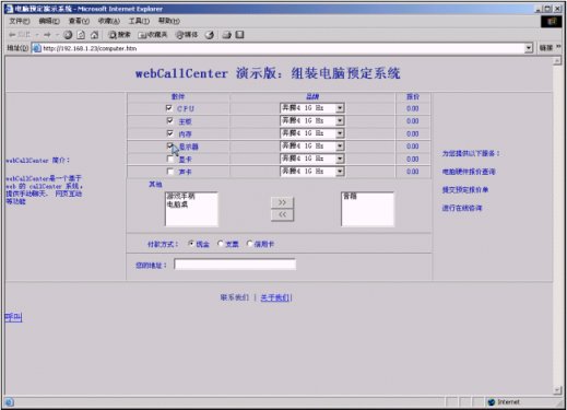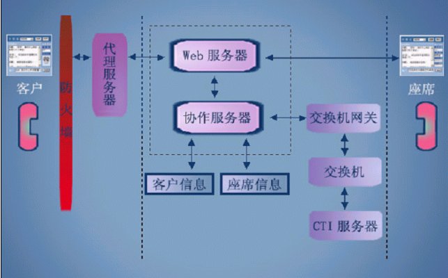 給基于交換機(jī)的呼叫中心,配備Web協(xié)作服務(wù)器和客戶端、座席端軟件包,使得利用PC上網(wǎng)的客戶可以通過因特網(wǎng)呼叫交換機(jī)中的組,使得應(yīng)答的座席,可以和客戶進(jìn)行實(shí)時文字交談、護(hù)航瀏覽、表單共享和共享白板。