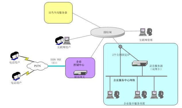 第一期工程包括16個座席,6路模擬中繼接入媒體網(wǎng)關。2006年7月6日安裝,三天后投入試運行。以后會擴充座席數(shù),并以一路E1,SS7信令接入。由于其業(yè)務需要極高的可靠性,媒體網(wǎng)關、控制中心、數(shù)據(jù)庫服務器、以及業(yè)務平臺放置在電信機房托管,錄音服務器放在中心本地局域網(wǎng)內。