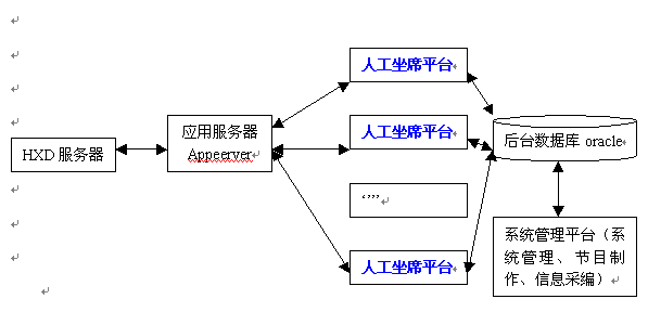 1) 數(shù)據(jù)庫(kù)系統(tǒng): 存放各類(lèi)待查信息數(shù)據(jù)、話(huà)務(wù)統(tǒng)計(jì)數(shù)據(jù)、話(huà)務(wù)員操作明細(xì)數(shù)據(jù)等;
