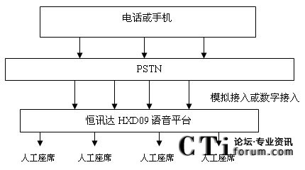 配置恒訊達(dá)公司HXD09的PRI或是7號信令接入,系統(tǒng)可自動與交換機(jī)通信獲取主叫號碼,話務(wù)員數(shù)量根據(jù)需要配置。