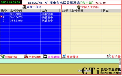 1、直播節(jié)目開播時,參與者打進(jìn)電話,由導(dǎo)播把參與電話導(dǎo)入直播區(qū),這時直播區(qū)顯示參與者的電話號碼,主持人可以任意的選擇參與者進(jìn)行通話或掛機(jī)。
