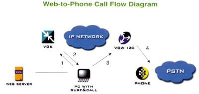 VocalTec公司的網上呼叫(Surf&Call)網絡客戶軟件5.0(Web Client5.0),可提供語音增值電子商務服務以及通過IP網的網絡到電話呼叫業(yè)務。Surf&Call是一種面向基于互聯(lián)網電信應用的獨特網絡軟件,可通過互聯(lián)網使任何網站與普通電話實現(xiàn)語音連接,是VocalTec整體架構的一部分。Surf&Call為網頁提供一個按鈕,上網者單擊該按鈕,就可與座席通話。在大多數(shù)瀏覽器環(huán)境下,在瀏覽需要利用Surf&Call軟件的頁面時,Surf&Call可自動下載和安裝。