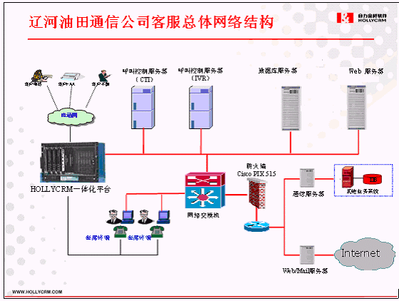 采用HOLLYCRM(合力金橋軟件)公司的HollyC6呼叫中心解決方案后,將遼河油田通信公司和客戶的多種接入溝通渠道進(jìn)行了整合,真正實(shí)現(xiàn)了電話、傳真、電子郵件、網(wǎng)絡(luò)等多媒體的接入方式。拓展了通信公司和客戶的溝通渠道,能夠為客戶提供多種途徑更好的為更廣大范圍的服務(wù)和管理。