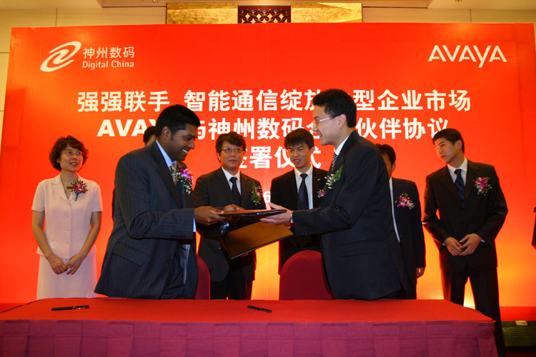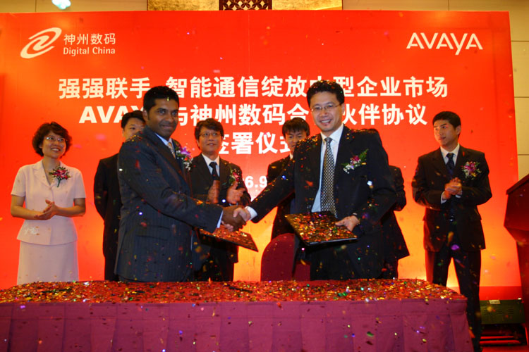 強(qiáng)強(qiáng)聯(lián)手 智能通信綻放中型企業(yè)市場(chǎng) AVAYA與神州數(shù)碼合作伙伴協(xié)議簽署儀式