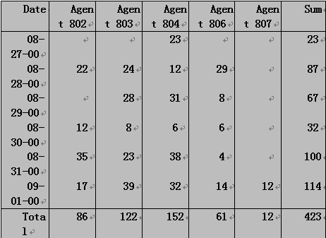 1 總話務(wù)量統(tǒng)計(jì)