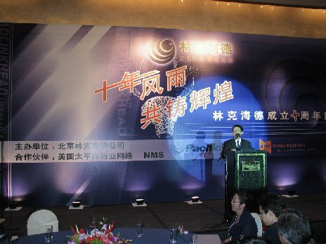 2004年6月10日,林克海德公司在昆侖飯店迎來了十年華誕,林克海德的新朋老友歡聚一堂,齊唱同一首歌。美國NMS總裁Bob,太平洋網(wǎng)絡總裁Tony都遠程趕來祝賀。在過去的十年中,林克海德見證了中國電信增值業(yè)務領域從無到有、從簡單的語音信箱到目前斑斕多彩的彩信業(yè)務的發(fā)展歷程,被譽為國內(nèi)板卡市場的旗艦,F(xiàn)在隨著中國通信領域電信增值業(yè)務的發(fā)展,林克海德憑借語音增值業(yè)務方面的豐富經(jīng)驗,成為業(yè)內(nèi)知名的語音、傳真、數(shù)據(jù)等多媒體業(yè)務開發(fā)平臺的提供商和系統(tǒng)方案服務商,林克海德公司走進了新的語音時代!