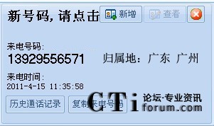 來電彈屏自動顯示對方號碼歸屬地?cái)?shù)據(jù)信息;