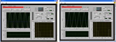 當(dāng)兩個(gè)(或多個(gè))設(shè)備一起工作并對(duì)時(shí)間有精確要求的時(shí)候,就需要在它們之間進(jìn)行同步。同步是基于在兩個(gè)設(shè)備之間規(guī)定一個(gè)共同的時(shí)間參考,試想如果將不同音軌的音頻訊號(hào)分別錄在不同的磁帶機(jī)上,則必須將這兩個(gè)磁帶機(jī)的磁帶傳送軸鎖定在一起,否則將來撥放出來就會(huì)有相位上的誤差,這個(gè)過程就稱為同步。假使這兩個(gè)設(shè)備沒有進(jìn)行同步,無論它們開始的時(shí)間多么一致,也會(huì)由于兩臺(tái)設(shè)備在機(jī)械結(jié)構(gòu)的差異而產(chǎn)生時(shí)間漂移。同樣的,對(duì)于數(shù)據(jù)采集卡也是一樣的概念,甚至在要求上更為嚴(yán)格。而如何達(dá)到數(shù)據(jù)同步采集,最基本的要求就是不同模塊間要有相同的工作時(shí)脈與一致的觸發(fā)信號(hào),而這個(gè)相同的時(shí)脈信號(hào)需來自于共同的外部儀器。下圖中的弦波是兩張數(shù)據(jù)采集卡在同步與異步采集同一信號(hào)源所得的波形,在左圖中因異步而存在一向位差,右圖中則是同步觸發(fā)下得到完全重迭的波形。