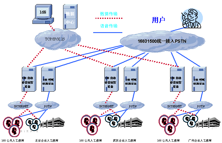 “中國電信168315企業(yè)客戶服務(wù)中心”利用分布在全國各地的168聲訊臺(tái),為企業(yè)提供全國統(tǒng)一特服接入號(hào)碼以及統(tǒng)一的自動(dòng)語音服務(wù)功能,包括信息發(fā)布、信息查詢、信息登記、語音留言、自動(dòng)傳真等服務(wù)功能,消費(fèi)者在開通地區(qū)只需付市話費(fèi)就可以獲得企業(yè)的此項(xiàng)服務(wù)。針對(duì)消費(fèi)者在使用16831500-****電話中的語音自動(dòng)應(yīng)答功能時(shí),會(huì)遇到一些系統(tǒng)設(shè)計(jì)好的答案無法解決的模糊問題,消費(fèi)者只要按“0”號(hào)鍵,電話就被轉(zhuǎn)到企業(yè)在當(dāng)?shù)胤⻊?wù)人員的座席上,由專業(yè)人員來提供服務(wù)支持。也可以將消費(fèi)者的呼叫請(qǐng)求轉(zhuǎn)移到全國各地168臺(tái)的公共人工座席上,統(tǒng)一由168臺(tái)的外包服務(wù)座席提供服務(wù)。該系統(tǒng)為16831500智能電話網(wǎng)的自動(dòng)語音應(yīng)答服務(wù)功能提供充分的人工服務(wù)支持。
