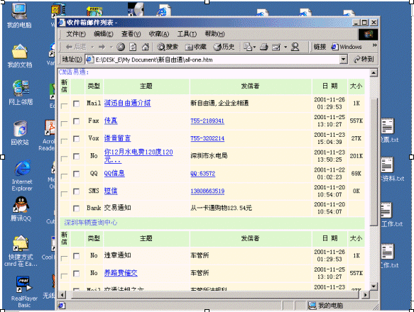 傳統(tǒng)郵件系統(tǒng)作為信息交換的手段在PC后的互聯(lián)網(wǎng)絡(luò)時(shí)代廣為運(yùn)用,但是,郵件系統(tǒng)一個(gè)大的缺點(diǎn)是離不開電腦。CTI技術(shù)技術(shù)通過傳統(tǒng)的電話網(wǎng)絡(luò)傳遞語音信息。電話網(wǎng)具有廣泛普及,人人使用這一特點(diǎn),這兩大技術(shù)的發(fā)展促使兩大技術(shù)的融合,那就是隨時(shí)隨地(anytime and anywhere)人們都可以通過電話,電腦使用郵件,訪問郵件。