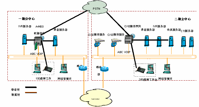 基礎(chǔ)語(yǔ)音系統(tǒng)采用阿爾卡特OmniPCX Enterprise語(yǔ)音通信平臺(tái),它采用分布式的語(yǔ)音體系架構(gòu),完全融合IP技術(shù),并可集成傳統(tǒng)的TDM語(yǔ)音。OmniPCX Enterprise提供開(kāi)放的標(biāo)準(zhǔn)和靈活的擴(kuò)展能力,并提供99.999%的高可靠性。讓用戶靈活的配置其座席的地理位置和通信方式,并保證系統(tǒng)運(yùn)行安全可靠。OmniPCX Enterprise交換機(jī)(二期)計(jì)劃采用Appliance Server呼叫服務(wù)器雙備份結(jié)構(gòu),提供RSI接口與GENESYS相連,以及并線錄音系統(tǒng)接口。今后,項(xiàng)目還將采用先進(jìn)的阿爾卡特-My Phone IP WEB軟電話,提高內(nèi)部通信能力,優(yōu)化業(yè)務(wù)流程。