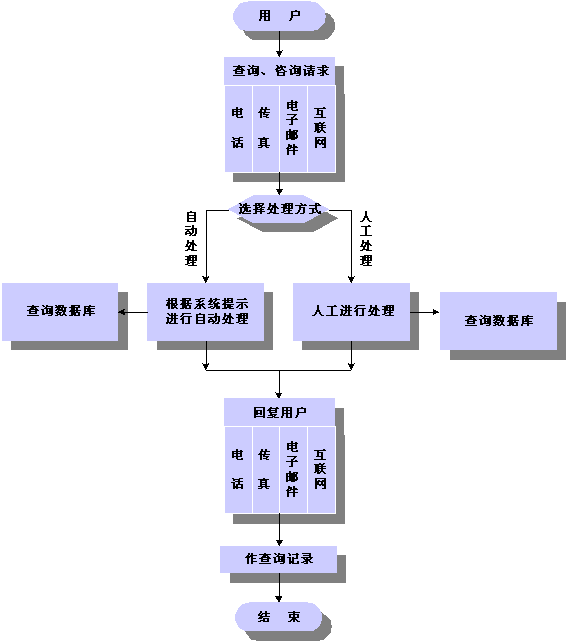 如:可開(kāi)展信息咨詢業(yè)務(wù),為患者提供具體企業(yè)、事業(yè)單位的信息查詢,包括企業(yè)介紹、產(chǎn)品服務(wù)介紹、價(jià)格、功能、銷售地點(diǎn)、聯(lián)系電話、服務(wù)流程、辦事程序等。實(shí)現(xiàn)的方式包括口頭咨詢、語(yǔ)音服務(wù)、傳真服務(wù)、E-Mail等。系統(tǒng)對(duì)患者咨詢的反饋方式有:電話通知、傳真通知、人工回答、電子郵件。