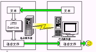 本地接口調(diào)用方案提供捷通華聲TTS開發(fā)工具包(jTTS-SDK)可使用戶在其開發(fā)的系統(tǒng)中加入語音合成的功能。jTTS-SDK是基于Win32(32位Windows環(huán)境,包括Windows95/98/2000/NT)平臺下的開發(fā)工具包,因此這種方案要求使用方的聲訊服務系統(tǒng)所運行的是32 位Windows環(huán)境的服務器,并且需要對使用方系統(tǒng)進行部分程序的改造。該方案適用于要求使用方具有二次開發(fā)能力的集成和應用商。