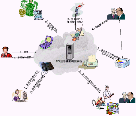 處理"非典"事務(wù)需要多個(gè)部門(mén)共同完成。應(yīng)急指揮系統(tǒng)會(huì)把相關(guān)信息根據(jù)置好的流程自動(dòng)通過(guò)語(yǔ)音電話、短信和傳真發(fā)送到上級(jí)領(lǐng)導(dǎo)和相關(guān)的職能部門(mén),以便及時(shí)得到來(lái)自各方面的支持反饋,使得處理突發(fā)事件時(shí)做到緊張有序。
