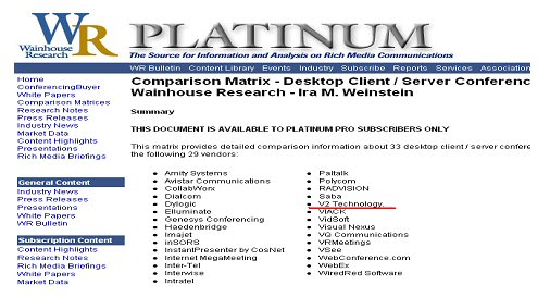 日前,在美國多媒體視頻和通訊領域權(quán)威市場調(diào)研機構(gòu)的 Wainhouse Research 最新發(fā)布了的全球軟件視頻會議廠商的研究報告,北京威速(V2)科技有限公司作為中國領先的軟件視頻會議與解決方案提供商,憑借在軟件視頻會議領域里始終如一的卓越表現(xiàn),以中國唯一廠商的身份入主“全球軟件視頻會議TOP30”榜單。