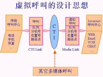 由于有了這種“虛擬呼叫”的技術(shù),CTI平臺才能夠?qū)嶋H的電話呼叫和來自Internet的訪問進行統(tǒng)一的處理。這是一種完整意義上的將傳統(tǒng)呼叫與Internet訪問完美結(jié)合的設(shè)計思想。