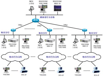 建成后的新湖南省農業(yè)銀行視頻會議系統(tǒng)圖