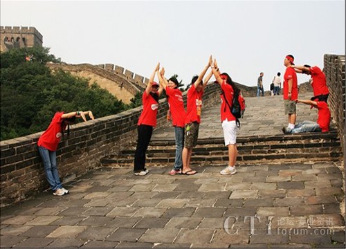 瞧瞧我們這架勢(shì),時(shí)刻都不忘給自己是來(lái)自招商銀行的志愿者。在長(zhǎng)城上擺CMB(China Merchants Bank),真是太有創(chuàng)意啦!