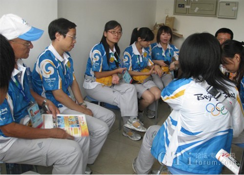步入休息室,首先映入眼簾的就是語言支持志愿者們的“杰作”——寫滿各國語言的祝福字句的白板,異國文字熱情洋溢地感染著每個人的心。休息室里的崗前討論是呼叫中心的志愿者們工作日的前奏曲,俄、德、法、西班牙、羅馬尼亞志愿者們分享著自己語言支持的經(jīng)驗和感觸。這一刻志愿者休息室頓時成為一個小小“聯(lián)合國”,雖是不同的語言文字卻完全沒有隔閡,因為大家為奧運為殘奧志愿服務(wù)的心貼的很親很近……