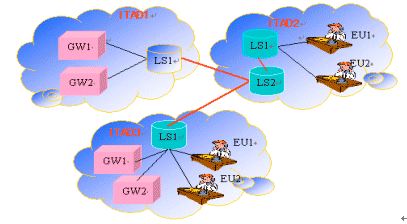 一個ITAD可以沒有網(wǎng)關(guān),在這種情況下,它的LS就通過TRIP協(xié)議來獲取別的域中的網(wǎng)關(guān)信息,而且讓這些網(wǎng)關(guān)信息對自己域中EU可用,在這種情況下,這個IT 管理域就成了一個虛擬的IP電話網(wǎng)關(guān)提供者了,因為它提供了網(wǎng)關(guān)服務(wù),但是它自己實際又沒有網(wǎng)關(guān)和管理任何網(wǎng)關(guān)。一個IT管理域也可以沒有端用戶,這時它可以提供"批發(fā)"網(wǎng)關(guān)的服務(wù),為其他ITAD里的顧客提供網(wǎng)關(guān)服務(wù);一個IT管理域可以既沒有網(wǎng)關(guān)也沒有端用戶,只有LS,在這種情況下,ITAD充當(dāng)一個批發(fā)商(Reseller),獲取其它域的網(wǎng)關(guān)信息,而且收集和傳播這些信息對其它有用戶的ITAD。