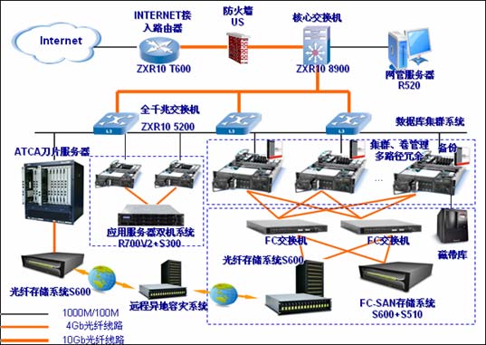 ZTE磁盤陣列、磁帶庫、FC連接設備等存儲硬件設備;