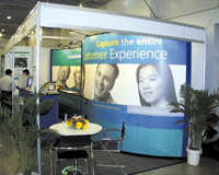 天公作美,8月3日Call Center '2000開(kāi)幕的那一天,是炎炎夏日里難得的一個(gè)陰天。然而,對(duì)記者來(lái)說(shuō),還是有“意外”的事情發(fā)生。在同一天,國(guó)際會(huì)議中心有兩個(gè)展覽會(huì),另外一個(gè)似乎是網(wǎng)絡(luò)教育展。記者由于忘了帶記者證,在門口和警衛(wèi)磨了半天,好不容易放了行。進(jìn)去一看,蒙了,怎么都是不太熟悉的公司。再環(huán)顧四周,嗨,根本就是另外碼事。求了半天情,卻進(jìn)錯(cuò)了門,有點(diǎn)不值!