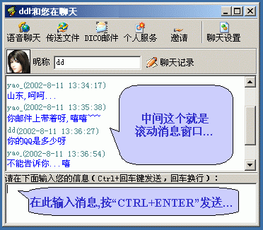 5、另外,這夢幻尋呼DICO還將具有"短消息"和"自帶聊天室"功能,不過目前處于開發(fā)中。有了這夢幻尋呼,以后聊天的日子就瞧好吧你!