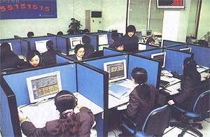 圖為經(jīng)過(guò)專業(yè)培訓(xùn)的客戶服務(wù)代表正在親切客戶來(lái)電