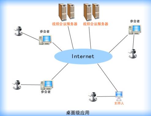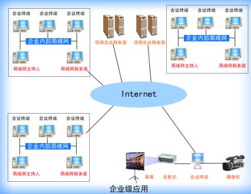 在企業(yè)級別的應(yīng)用中,企業(yè)將服務(wù)器構(gòu)架在公司內(nèi)部,遠(yuǎn)程用戶及局域網(wǎng)內(nèi)部的用戶均可登錄服務(wù)器,實(shí)現(xiàn)交互。企業(yè)級視頻會(huì)議系統(tǒng)的應(yīng)用實(shí)際上就是將桌面級視頻會(huì)議與會(huì)議室級視頻會(huì)議系統(tǒng)有機(jī)的結(jié)合在一起,客戶端硬件外設(shè)可以按照以上的建議,根據(jù)各終端不同的需求進(jìn)行配置。