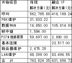 某企業(yè)傳統(tǒng)方案與融合方案年運(yùn)營(yíng)開(kāi)銷(xiāo)對(duì)比