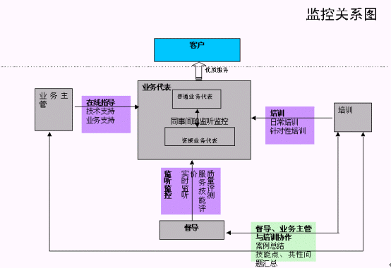 呼叫中心的質量管理涉及到如下幾個方面,一、座席人員的話務質量;二、各項質量運營指標的實現(xiàn)情況;三、客戶的滿意度指標。在本部分內容中,重點討論話務人員的話務質量控制。
