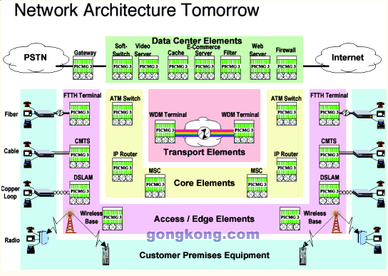 AdvancedTCA在電信網絡架構中的位置如下圖所示:
