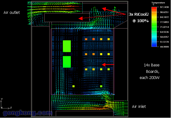 根據13U ATCA Shelf,威圖公司做了熱量以及風量的模擬分析: