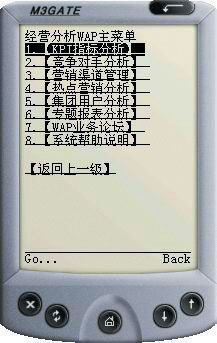 右圖為江蘇移動鹽城分公司企業(yè)經(jīng)營分析系統(tǒng)WAP手機(jī)應(yīng)用界面。