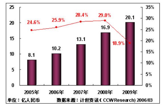 計(jì)世資訊(CCW Research)預(yù)計(jì):2006年中國(guó)城市應(yīng)急聯(lián)動(dòng)系統(tǒng)IT投資將保持25.9%的增長(zhǎng)率,投資規(guī)模將達(dá)到10.2億元;由于"十一五"規(guī)劃的實(shí)施,以及數(shù)字奧運(yùn)進(jìn)入關(guān)鍵建設(shè)階段,預(yù)計(jì)在2007年,中國(guó)城市應(yīng)急聯(lián)動(dòng)系統(tǒng)增長(zhǎng)率達(dá)到28.4%,2008年增長(zhǎng)率達(dá)到29.0%;到2009年中國(guó)城市應(yīng)急聯(lián)動(dòng)系統(tǒng)將進(jìn)入穩(wěn)定增長(zhǎng)階段,IT投入將達(dá)到20.1億元。