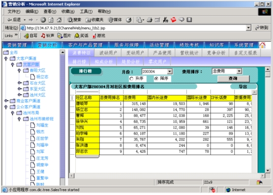 本系統(tǒng)是以市場(chǎng)為導(dǎo)向、客戶為中心、效益為目標(biāo)的電信營(yíng)銷和服務(wù)的支撐系統(tǒng),為企業(yè)經(jīng)營(yíng)服務(wù)和營(yíng)銷戰(zhàn)略提供有力的支撐,通過(guò)對(duì)業(yè)務(wù)收入、業(yè)務(wù)發(fā)展以及市場(chǎng)競(jìng)爭(zhēng)的深入分析,從而達(dá)到留住老客戶、發(fā)現(xiàn)新客戶,了解競(jìng)爭(zhēng)對(duì)手動(dòng)態(tài),及時(shí)掌握市場(chǎng)變化趨勢(shì)的目的。