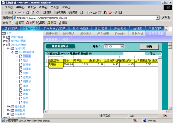 對(duì)于客戶的故障、投訴,營(yíng)銷服務(wù)支撐系統(tǒng)及時(shí)從1000號(hào)客戶服務(wù)系統(tǒng)獲取信息,及時(shí)獲取派發(fā)的工單,及時(shí)解決客戶問(wèn)題,并能夠跟蹤故障、投訴解決情況。通過(guò)數(shù)據(jù)分析,掌握企業(yè)的服務(wù)質(zhì)量。