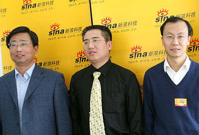 信產(chǎn)部電信研究院專家作客新浪科技,左起分別為陳育平、續(xù)合元和何寶宏。