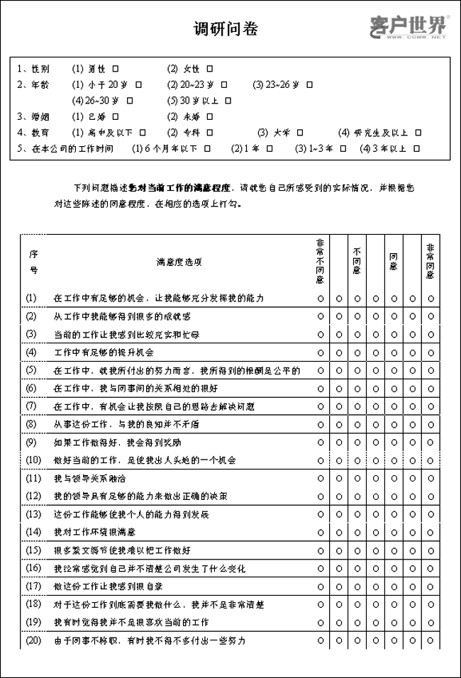 對于呼叫中心的實際情況來說,采用“明尼蘇達工作滿意度量表”(Minnesota Satisfaction Questionnaire,簡稱MSQ)效果最好,因為: