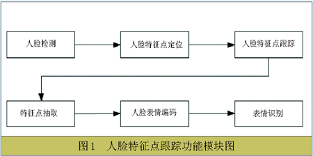 該模塊首先進(jìn)行人臉檢測,對眼角、嘴角等特征點(diǎn)進(jìn)行粗略定位,然后根據(jù)小波變換進(jìn)行精細(xì)定位,最終得到較為精細(xì)的人臉表情參數(shù)初始值。之后運(yùn)用Lucas-Kanade算法進(jìn)行特征點(diǎn)的跟蹤,利用跟蹤得到的特征點(diǎn)位置首先根據(jù)Ekman的人臉表情編碼規(guī)則進(jìn)行編碼,然后根據(jù)所得到的編碼結(jié)果進(jìn)行表情識別。該系統(tǒng)不僅實(shí)現(xiàn)了全自動的特征點(diǎn)定位和跟蹤,而且根據(jù)人臉特征點(diǎn)的分布模型,可以對跟蹤時特征點(diǎn)的丟失現(xiàn)象進(jìn)行補(bǔ)償。