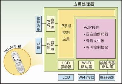在這些設(shè)計(jì)中,一般的人機(jī)界面(MMI)以及VoIP通話控制功能使用傳統(tǒng)的應(yīng)用處理器(ARM、MIPS等),而DSP則用于語音到數(shù)據(jù)包到語音的轉(zhuǎn)換。此方法在便攜設(shè)備的設(shè)計(jì)中暴露出很多缺點(diǎn)。
