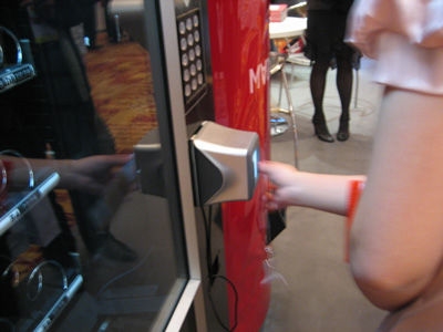層出不窮的新創(chuàng)意在展會上吸引著參觀者的目光。在意銳的二維碼自動售貨機旁(下圖所示),有人手持一張印制二維碼的卡片,對準自動售貨機的二維碼識讀端口,識讀后即獲得一聽百事可樂。手持相同卡片的圍觀人群發(fā)出驚嘆的贊許,原來這是意銳與億動傳媒聯(lián)手為參加展會的每位人員提供的免費禮品,一張小小的卡片上,一個不足卡片十分之一大小的黑白色小方塊,帶給參會者如此大的驚喜。意銳和億動傳媒以這種娛樂趣味的方式向大家展示了二維碼的時尚應用,實際上二維碼技術(shù)在廣告領(lǐng)域也能發(fā)揮其意想不到的優(yōu)勢。作為國際、國內(nèi)雙重標準的二維碼——QR碼,廣泛應用于海關(guān)、稅務、工商、保險、運輸、防偽、傳媒等多行業(yè)多領(lǐng)域。二維碼作為記錄信息的新一代條碼技術(shù)開辟了提供多樣而豐富信息的捷徑,手機網(wǎng)絡(luò)作為新興于廣告業(yè)的傳播媒介,如同一把雙刃劍,打破所有媒體界限,把傳統(tǒng)媒體和新媒體進行整合的新的營銷平臺。二維碼成為信息載體功能的媒介和商業(yè)終端,二維碼技術(shù)在廣告業(yè)的應用涵蓋了傳統(tǒng)媒體與新媒體的全部特性,它在實現(xiàn)自身基本功能屬性的過程中,由于能與最終用戶直接接觸,因而能夠?qū)⑻囟ǖ男畔⑦M行最大響度的有效傳播,進而達到超過普通媒體傳播效果的狀態(tài),所謂精準營銷。