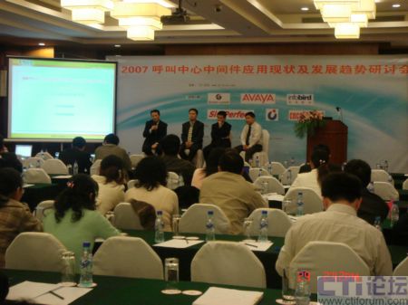 2007年11月29日,由CTI論壇主辦的,2007呼叫中心中間件應用現(xiàn)狀及發(fā)展趨勢研討會在上海光大會展中心國際大酒店隆重召開,會議期間,來自于當前各主流中間件廠商的專家在臺上回答參會代表的提問,與代表互動交流,并就熱點問題各抒己見,共同探討。