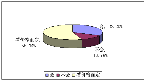 A、會(huì)(32.20%) B、不會(huì)(12.76%) C、看價(jià)格而定(55.04%)