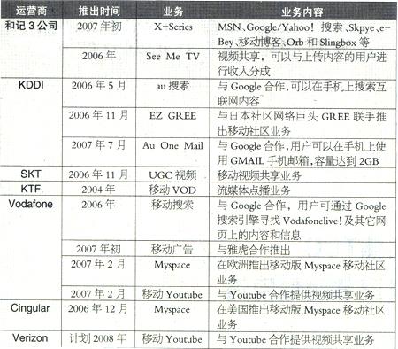 全球主要移動運營商推出的新型移動互聯(lián)網(wǎng)業(yè)務(wù)