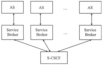 集中控制方式由一個(gè)ServiceBroker來(lái)協(xié)調(diào)控制所有業(yè)務(wù)之間的交互,S-CSCF把ServiceBroker視為AS,通過(guò)ISC接口與惟一的ServiceBroker聯(lián)系,Service Broker與AS之間的接口仍然是ISC接口,這種方式容易實(shí)現(xiàn),但是Service Broker容易成為網(wǎng)絡(luò)中的瓶頸。