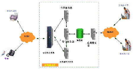 - 數(shù)據(jù)庫服務(wù)器(2臺,1U,利舊): 連接到公網(wǎng)/內(nèi)網(wǎng)上。儲存所有傳真、語音業(yè)務(wù)的數(shù)據(jù)。